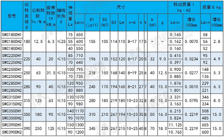 SWC-DH萬向聯(lián)軸器是一種常用的聯(lián)軸器。利用其結(jié)構(gòu)的特點能使不在同一軸線或軸線折角較大或軸向移動較大的兩軸等角速連續(xù)回轉(zhuǎn),并可靠地傳遞轉(zhuǎn)矩和運動。能廣泛應(yīng)用于冶金、起重、工程運輸、礦山、石油、船舶、煤炭、橡膠、造紙機械及其它重機行業(yè)的機械軸系中傳遞轉(zhuǎn)矩。